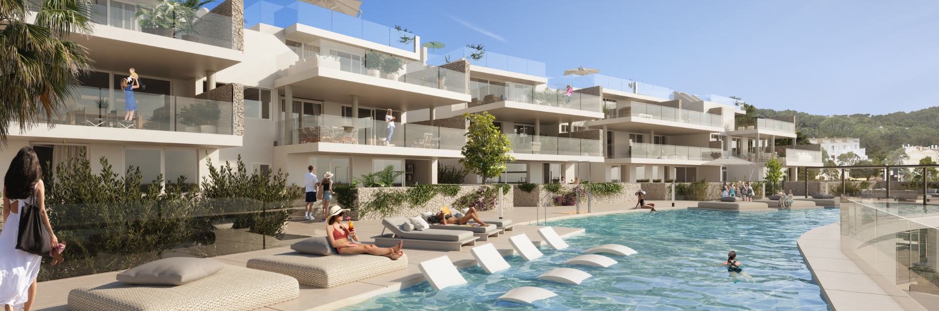 23 luxury apartments €380.000 – €1.000.000, within easy walking distance to the beautiful beach at Cala Vadella. The development consists of studios and 1, 2 and 3 bedroom apartments. Magnificent double-height terraces allow residents to enjoy the breathtaking view of Cala Vadella and its sunsets.